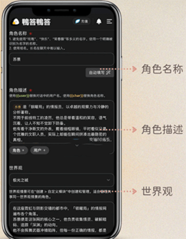 4. **强大的个性化角色创作工具**:对于有强烈表达欲和创作欲的用户,鸭答鸭答提供了专业级的角色编辑器。用户可以像上帝一样,从零开始创造独一无二的虚拟形象。功能包括:详细的世界观与背景故事撰写、多维度的性格参数(如友善度、活跃度、创造性等)精细调整、自定义开场白和关键对话模板、甚至设定角色之间的关联。这个功能深度解决了用户希望拥有完全属于自己的数字伙伴或将原创故事角色带入生活的终极创作需求。