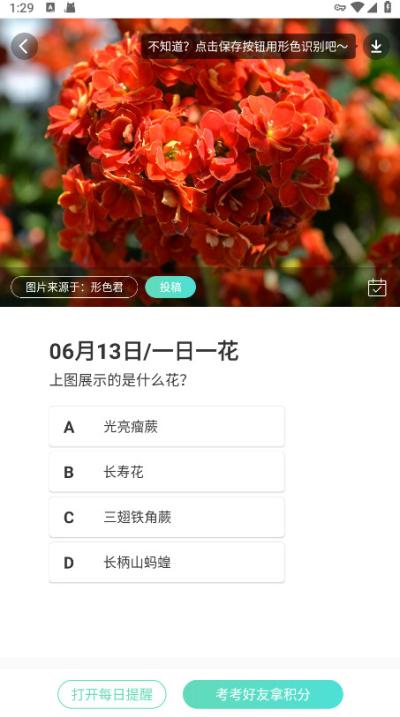 4. 每日一花与植物挑战:为了培养用户的长期使用习惯和植物学兴趣,形色推出了每日一花知识卡片和各类主题识别挑战。每天推送一种特色植物的精美图文介绍,潜移默化中增加用户的植物知识储备。定期举办的识别挑战赛,则能激发用户的参与感和成就感,让学习过程变得更具趣味性和游戏化,有效解决了用户如何持续保持对植物的兴趣和系统性学习的需求。