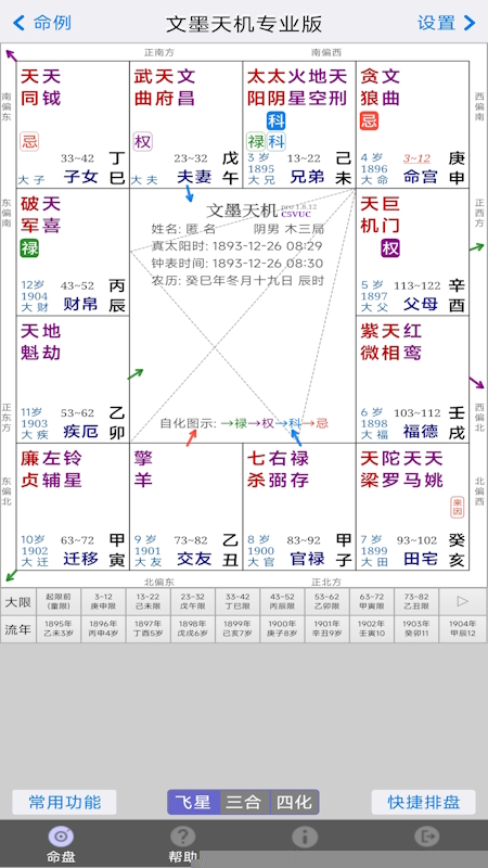 四、 专业的盘面分析与辅助解读:除了核心的排盘功能,软件还内置了强大的辅助分析模块。在紫微斗数盘中,可以详细显示星曜的庙旺利陷、十二长生状态、四化引动关系;在奇门遁甲盘中,能清晰标注星、门、神、宫的吉凶与能量流转;提供神煞查询、十神关系图解、大运流年自动叠加等深度功能。这些智能化的辅助信息,如同一位博学的助手,帮助用户快速抓住盘面关键,深化解读层次。