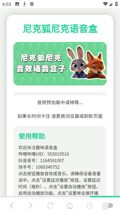 在数字娱乐日益丰富的今天,声音作为一种极具感染力和辨识度的媒介,正成为用户个性化表达的重要方式。尼克狐尼克语音盒应运而生,它巧妙地将迪士尼经典动画疯狂动物城中尼克狐与朱迪兔这两位人气角色的魅力,转化为可互动、可创造的声音工具,为用户带来了沉浸式的角色扮演与趣味变声体验。这款软件不仅仅是一个简单的音效播放器,更是一个连接虚拟角色与现实互动的创意桥梁,让粉丝能够随时随地声临其境,将喜爱的角色声音融入日常社交与娱乐之中。