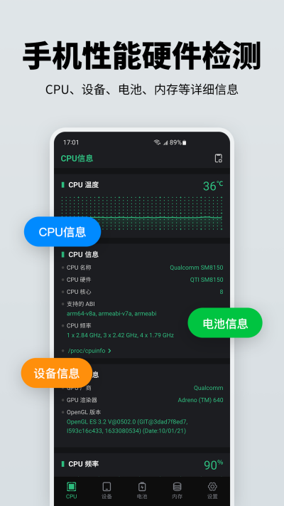 手机性能硬件检测是一款集深度监控、实时分析与直观展示于一体的专业级手机硬件检测软件。它打破用户与手机硬件之间的信息壁垒,将CPU、GPU、内存、电池等核心部件的运行状态以毫秒级的精度呈现于用户眼前。这款应用不仅仅是一个简单的信息查看器,更是一个动态的性能仪表盘和健康预警系统。它通过强大的底层数据抓取能力,结合精心设计的用户界面,将原本晦涩难懂的硬件参数转化为清晰易懂的图表和曲线,无论是科技爱好者想要挖掘设备极限,还是普通用户希望监控手机健康、提升使用体验,都能从中获得强大的工具支持。其免费、强大且实用的特性,使其成为手机用户必备的硬件管理利器。
