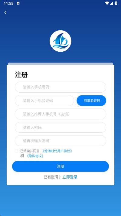二、便捷安全的账户通行体系: 软件提供了流畅且安全的账户注册与登录流程。登录界面设计简洁,设有醒目的账号密码输入框和蓝色的登录按钮,下方提供立即注册入口,方便新用户快速加入。支持切换至短信验证码等快捷登录方式,兼顾安全与效率。注册流程规范,需要依次填写手机号、验证码、推荐人手机号(可选)及密码,并需勾选同意用户协议与隐私政策,确保用户在知情同意的前提下完成身份验证,安全开启平台所有服务。