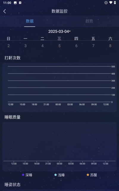 1. 高精度睡眠监测与趋势分析:针对用户不了解自己真实睡眠状况的痛点,值米睡眠通过与自研穿戴设备的深度绑定,实现整夜不间断的睡眠阶段(如浅睡、深睡、REM快速眼动期)监测。它不仅能记录入睡与醒来的时间,更能提供日、周、月的睡眠趋势图。这项功能让用户能够直观地观察睡眠质量的长期变化,识别影响睡眠的潜在因素(如工作日压力、周末作息紊乱等),为主动调整生活方式提供数据依据。