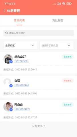 1. 科学化体测与成长档案管理: 针对体育、舞蹈、体能训练等机构的核心需求,学蝉提供了专业的体测管理中心。用户可以系统化地录入、存储和查看每一位学员的体测报告,并支持多学员数据的横向对比与历史数据的纵向趋势分析。这一功能解决了机构难以量化追踪学员身体素质变化、无法为个性化教学提供科学依据的难题。通过直观的数据图表,教师可以清晰掌握学员的优势与待提升领域,从而制定出更具针对性的训练方案,提升教学效果和学员成就感。