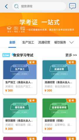 1. 系统化培训与认证体系: 针对用户获取权威资质证明、满足合规上岗或职业晋升的需求,软件提供了覆盖生产加工、流通经营、餐饮服务、监督管理及学校课程等五大核心领域的全套培训课程。用户可随时随地在线学习食品安全法等法规及操作规范,并通过同步在线考试检验学习成果。成功通过考核后,即可获得相应的电子证书,该证书可作为个人专业能力的有效凭证,解决了用户寻求官方认可培训渠道难、线下培训成本高时间紧的痛点。