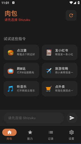 1. 自然语言任务驱动: 这是肉包最核心的功能,解决了用户不知如何用机器语言表达需求的难题。用户无需学习任何脚本语法或流程图设计,直接在应用内的输入框用口语描述任务即可。无论是跨应用的数据搬运(如从淘宝保存商品图片到备忘录)、定时的重复操作(如每日打卡),还是条件触发的复杂流程(如收到特定短信后自动回复并记录),肉包都能尝试理解并转化为可执行方案。