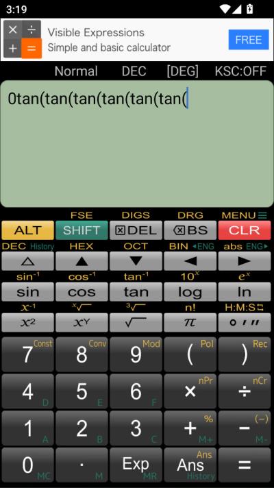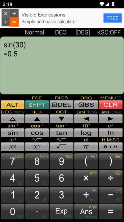 1. 全面的科学计算与公式编辑:Panecal的核心功能在于其强大的科学计算能力。它支持三角函数(sin, cos, tan)、反三角函数(如arcsin,通过[ALT]键组合激活)、对数、指数、幂运算、阶乘、常数(如π、e)等所有常见科学函数。更出色的是其公式编辑功能,计算表达式可以像文本一样在显示屏上清晰显示和修改,用户能够直观地检查整个计算过程,有效避免了因输入顺序错误导致的失误,极大地满足了学生和专业人士对计算过程可追溯、可验证的刚性需求。