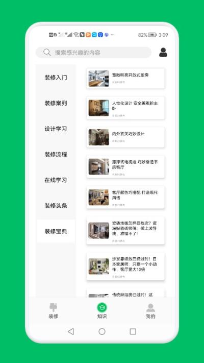 3. 解决装修知识碎片化的痛点:软件系统性地整理了装修全流程的知识体系,按照前期规划-硬装施工-主材选购-软装搭配-验收入住等阶段进行内容组织。用户可以获得从制定预算、识别材料到避坑指南等实用知识,形成一条清晰的学习路径。这相当于一位随时在线的装修顾问,帮助用户建立起系统的认知,从而在与设计师或施工方沟通时更有底气。