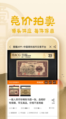 爱藏网是一款深耕于收藏品领域的垂直类线上平台与应用。它起源于钱币收藏这一核心领域,凭借其深厚的行业积淀与专业洞察,迅速赢得了用户的信任。随着平台的不断发展与完善,其业务范畴已成功拓展至邮票、纪念钞、金银币、古钱币乃至其他具有收藏价值的文化品类,构建了一个品类多元、层次丰富的线上收藏大观园。软件的核心使命在于,通过科技赋能,打破收藏领域的信息壁垒与地域限制,为全国乃至全球的收藏爱好者搭建一个安全、便捷、专业的交流与交易环境。它整合了拍卖、集市、直播等多种创新交易模式,并嵌入了权威的评级鉴定服务,培育了活跃的互动社区,最终形成了一个从藏品发现、价值评估、安全交易到知识分享的完整闭环,持续推动着收藏文化的普及与收藏市场的健康发展。