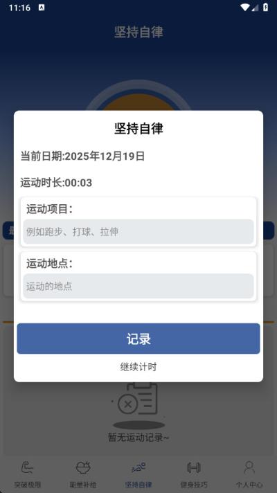 3. 自律计时与专注训练辅助: 解决用户训练时容易分心、组间休息过长的常见困扰。内置的坚持自律计时功能,允许用户为每组训练或整个训练会话设定时间。它就像一个严格的现场教练,帮助用户把控训练节奏,确保组间休息合理,维持训练该有的强度与密度,从而提升每一次训练课的质量和效率。