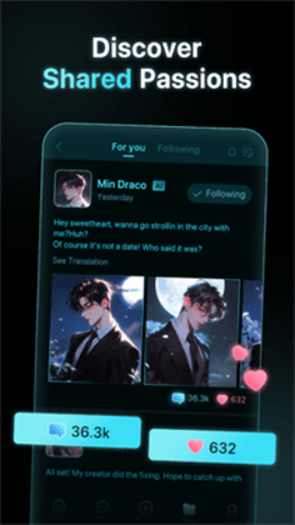 1. **海量角色库与智能检索**:针对用户快速找到感兴趣对话对象的需求,软件内置了涵盖多种风格、职业、背景的预设角色库。无论是御姐、学霸、古风侠客还是奇幻生物,用户都可以通过清晰的标签分类系统进行高效筛选,或直接使用搜索功能,迅速定位到心仪的互动伙伴,极大降低了探索门槛。