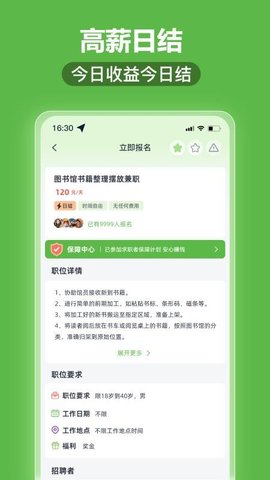 • LBS地理位置智能推荐: 软件充分利用手机定位功能,优先展示用户当前位置附近的兼职机会,并可按距离排序。这一功能极具实用性,它直接帮助用户节省了大量的通勤时间和成本,让家门口的兼职成为可能,特别适合寻找短期、临时性线下工作的用户。