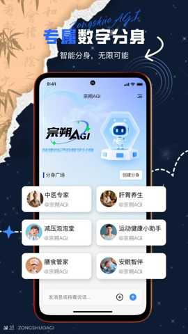 1. 智能数字分身与个性化交互:针对用户渴望获得专属陪伴与个性化服务体验的需求,宗朔AGI提供了数字分身广场功能。用户不再面对冰冷的标准化界面,而是可以根据自己的性格偏好和健康目标,打造或选择独一无二的智能体分身。通过与这些分身的智慧对话,用户能以更轻松、愉快的方式进行健康咨询、计划查询和日常互动,极大地提升了应用的趣味性和用户粘性,让健康管理过程不再枯燥。