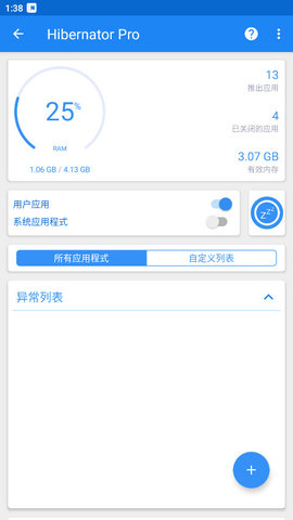 1. 全面进程识别与集中管控:面对手机中运行的大量应用和服务,手动管理费时费力。Hibernator Pro能够一次性扫描并清晰展示所有正在活动的任务,包括用户自行安装的软件以及部分可管理的系统内置程序。用户可以在主界面列表中自由勾选,将需要管控的应用纳入管理范围,实现对所有后台活动的集中、可视化掌控,解决了用户后台谁在跑、跑了多少的认知盲区问题。
