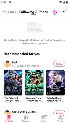 2. 智能个性化推荐:解决选择困难问题。 基于先进的算法引擎,myfiction能够深度分析用户的阅读历史、停留时长、收藏与评分行为,从而构建精准的用户兴趣画像。首页的猜你喜欢和个性化书单模块,会动态为用户推荐其可能感兴趣的新书或同类佳作。这种懂你的推荐机制,极大地降低了用户发现好书的成本,让每一次打开应用都能遇到惊喜,有效提升了阅读的延续性和探索乐趣。