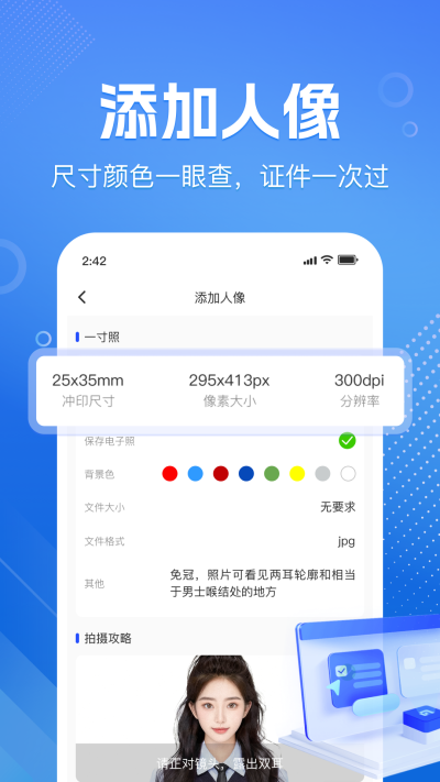 广泛的目标用户适配性: 软件的设计覆盖了广泛的人群场景:对于职场人士,它是随身的职业资质证明库;对于学生群体,它是应对各类报名考试的照片工厂;对于备考族,它是确保审核通过的合规助手;对于旅行者,它是办理各国签证的规格指南;对于追求效率的数字化生活家,它则是实现无纸化管理的得力助手。这种广泛的适用性,使其具备了强大的生命力和市场潜力。