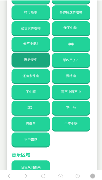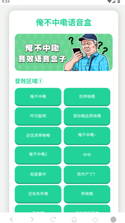 1. 海量趣味语音一键播放: 软件的核心资源库内置了丰富多样的俺不中嘞系列语音及扩展内容,如你弄啥嘞、咋可能咧、中中就是要中等经典语句。用户无需联网搜索,打开应用即可直接浏览和点击播放,解决了用户寻找稳定、高质量趣味语音源的需求。所有语音即点即响,反馈迅速,满足用户即时娱乐或表达的需求。
