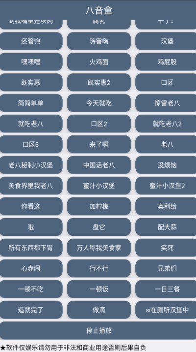 3. 便捷的播放控制与管理: 考虑到混音播放可能带来的嘈杂,应用提供了直观且高效的控制面板。用户不仅可以单独控制每个语音的播放与暂停,更可以通过界面下方醒目的停止播放按钮,一键让所有正在播放的音频瞬间静音。这种设计给予了用户充分的控制权,可以根据场合和心情随时开启或结束这场音频盛宴,兼顾了娱乐的爆发力与管理的便捷性。