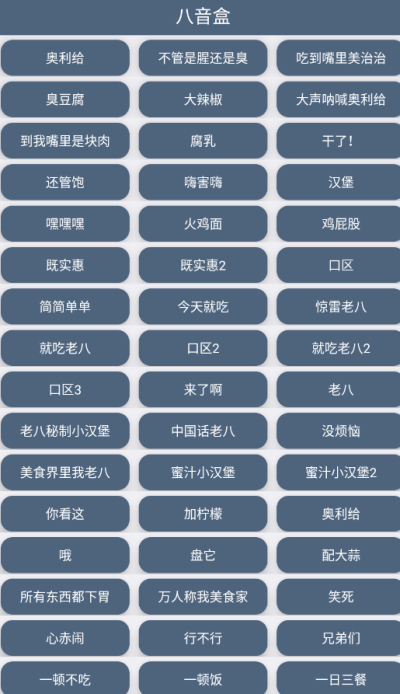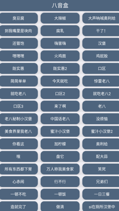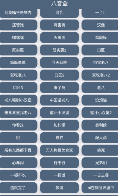 2. 创新混音与多音频并行播放: 区别于普通的单曲播放器,老八音频盒支持多个语音播放的混音功能。用户可以选择嗨害嗨、秘制小汉堡和来了啊老八等多个经典语录触发,创造出一种混乱又搞笑的叠加音效,趣味性倍增。这个功能特别适合想要制造更夸张、更热闹娱乐效果的场景,满足了用户追求新鲜感和创意玩法的深层需求。