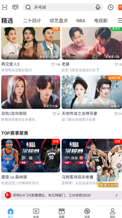 二、独家体育赛事直播,打造沉浸式观赛体验: 针对体育迷的深度需求,软件提供了强大的体育直播功能。它拥有NBA、CBA、欧洲五大联赛(英超、西甲、德甲、意甲、法甲)、中超、亚冠、UFC、WTT世乒赛、网球大满贯以及LPL、KPL等顶级电竞赛事的直播或转播权。搭配专业解说、多视角观赛、实时数据和技术统计,4K超高清画质结合免广告流畅播放,完美解决了体育爱好者寻找稳定、高清直播源的痛点,让用户仿佛亲临赛场。