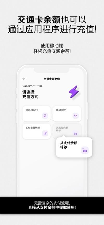 2. **全流程线上充值与管理**:解决了用户充值难、查询难的困扰。用户可以直接在应用内使用国际通用的支付方式(如Visa/Mastercard信用卡、支付宝)为卡片充值,免去了寻找便利店或充值机的麻烦。详细的交易账单查询功能让每一笔消费和出行记录都清晰可查,方便用户进行财务管理和行程回顾。多卡间的余额转移功能也使得家庭或团体出行时的资金管理变得异常简便。