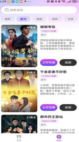 1. 海量资源与智能检索: 针对用户剧荒的核心痛点,片剧星球内置了庞大的短剧资源库。用户不仅可以通过分类、榜单或直接搜索轻松找到感兴趣的剧集,每部短剧还配有详细的剧情简介和角色介绍。这一功能帮助用户在点击播放前就能快速了解故事脉络和人物设定,精准判断是否符合个人口味,有效节省了筛选时间,提升了找剧效率。