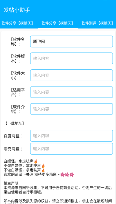 1. 智能模板化编辑,告别格式烦恼: 软件的核心功能之一是提供了多种预设的、针对不同发帖场景(如软件分享、游戏评测、教程发布等)的模板。用户无需从零开始构建帖子结构,只需选择最贴合自己需求的模板,即可进入标准化信息填写界面。这从根本上解决了用户因不熟悉论坛排版规则而导致帖子杂乱无章、可读性差的问题,确保每一次发帖都专业、规范。
