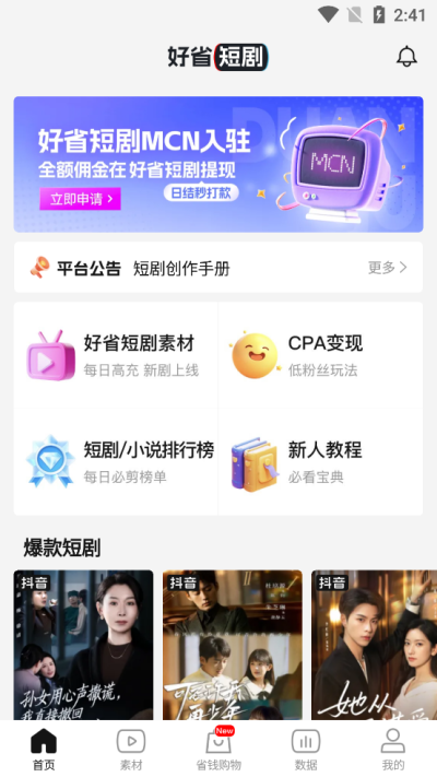 剧里剧外App是一款专为短剧短视频创作者设计的综合服务型应用。其核心使命是打破行业信息壁垒与资源垄断,通过整合上游的正版短剧版权资源与下游的主流短视频分发渠道,为创作者搭建一条从素材获取到授权合规再到流量变现的完整、高效、安全的通路。平台深度洞察创作者在内容生产与商业转化中的实际需求,不仅提供了海量的高清创作素材库,更内置了智能挂载、数据追踪、收益结算等关键功能,并辅以系统化的运营教学,降低短剧创作与推广的门槛,让无论是经验丰富的剪辑师,还是零基础的入门新手,都能在这个生态中找到自己的位置,并实现可持续的创作收益。
