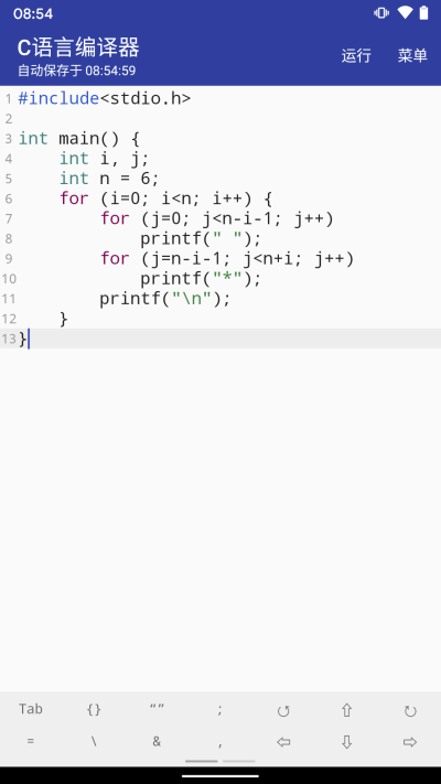 1. 无缝的移动端编译与执行: 解决了用户在没有电脑时无法编写和运行C程序的根本痛点。软件内置了完整的编译器和链接器,能够直接在手机上将源代码编译成可执行文件并运行。用户写完代码后,一键点击运行,即可在集成的终端窗口中看到程序的输出结果或详细的错误信息,实现了编码、编译、调试的闭环,让移动编程变得真实可行。
