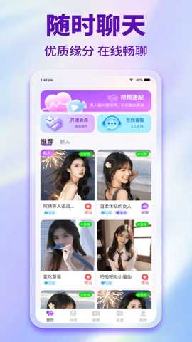 1. **智能推荐与精准匹配**:针对用户难以遇到合适的人这一痛点,享趣聊首页设有智能推荐板块。系统不仅依据用户填写的年龄、兴趣等基本信息,更结合实时地理位置进行数据分析,优先推送附近或同城的高匹配度异性。这极大地增加了线下相遇和深入发展的机会,让缘分不再受距离束缚,有效解决了交友目标不明确、效率低下的问题。