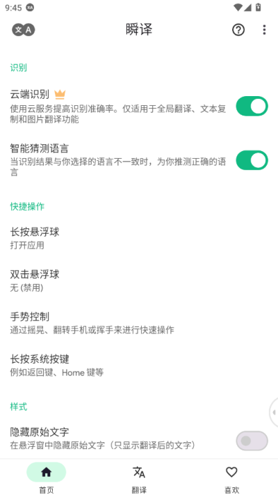 4. 高度自定义的翻译体验: 破解版高级版解锁了更多个性化设置选项,允许用户根据自身习惯深度定制翻译体验。用户可以自定义悬浮窗的透明度、位置和触发方式;设置常用语言对,实现一键切换;调整翻译结果的字体大小和显示样式。这些细节功能让翻译工具不再是冰冷的工具,而是能够贴合用户个人使用习惯的智能伙伴,提升长期使用的舒适度和效率。