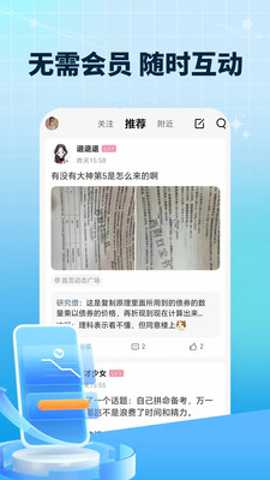 在个性化体验方面,软件超越了简单的千人一面资源堆砌。从基于目标院校/专业的小组匹配,到依据学习数据生成的智能题库推送和课程推荐,每一个功能模块都为用户打造量身定制的学习方案。这种深度个性化意味着软件能够伴随用户成长,动态适应其不同复习阶段的需求变化。