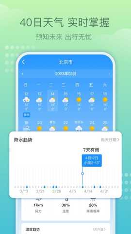 1. 精准全面的实时与中长期预报: 软件提供所在地的实时天气状况及未来长达15天的天气预报,彻底解决了用户对短期变化和长期趋势的双重信息需求。无论是今天是否需要带伞,还是下周出差该准备何种衣物,用户都能提前获知,从容规划,有效避免了因天气突变导致的行程延误或身体不适。