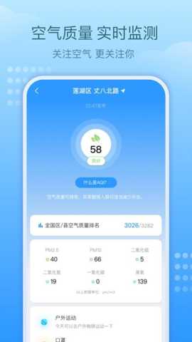 2. 多维度的精细化气象数据: 除了常规的阴晴雨雪和温度显示,软件深度整合了湿度、气压、风向风速、能见度、紫外线指数、空气质量指数(AQI)等关键环境参数。这些数据从不同维度刻画了天气的全貌,帮助用户进行更科学的生活决策。根据紫外线强度采取防晒措施,依据空气污染指数决定是否进行户外运动,真正实现了天气信息对健康生活的指导价值。