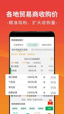 1. 全国实时行情与专业市场分析: 此功能直击用户最核心的价格焦虑需求。软件于每日凌晨四点准时更新全国各大主要市场的金属回收报价,并提供附带的专业市场分析简报。用户每天醒来,即可第一时间获取到最新、最权威的价格动态与趋势解读,无需再四处打听或依赖滞后信息。这极大地辅助了用户在进行出售或采购决策时,能够基于准确的数据判断最佳时机,从而最大化利润或控制成本。