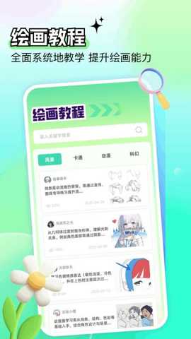 3. 体系化教程与能力提升: 认识到许多爱好者面临想学却无从下手的困境,一路发财绘画内置了结构清晰、内容全面的绘画教程体系。教程内容从最基础的线条、色彩、构图原理,逐步深入到各种风格与题材的高级创作技法,形成了循序渐进的学习路径。用户可以根据自身当前水平与学习目标,自主选择相应课程进行学习,从而系统化、高效率地提升绘画技能,解决了自学过程中缺乏方向和指导的核心需求。