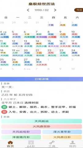 皇极经世历法app是一款深度融合了宋代邵雍皇极经世哲学思想的综合性传统文化工具软件。它超越了简单的日历查询功能,构建了一个以传统历法为基石、以易经卦象推演为核心的智慧系统。软件的核心在于将公历、农历、黄历(择吉历)进行精准对照与整合,并在此基础上,引入每日卦象分析与经典的六十四卦详解,为用户提供一份关于时间的立体化解读。它不仅服务于对传统农历、节气有刚性需求的用户,如农耕者,更面向所有希望在生活中融入传统文化智慧,寻求日程规划参考、个人决策辅助乃至精神层面启迪的现代人群。通过数字化手段,这款app使得皇极经世中以元经会,以会经运的宏大时空观,得以转化为每个人触手可及的日常指引。