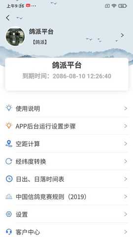 2. 一体化专业工具箱辅助科学决策: 针对鸽友在训放、比赛规划中遇到的各种计算与查询需求,软件内置了强大的专业工具集。经纬度转换工具方便用户在不同坐标格式间切换;空距计算功能能快速、准确地测算出司放地与归巢地之间的实际飞行距离,是比赛成绩评判的关键依据;日出日落查询功能允许用户选择具体城市和月份,即刻获取该地的精确日照时间,为科学安排司放时间、评估赛鸽归巢难度提供了至关重要的气象参考。这些工具的集成,将用户从繁琐的手工计算和资料查找中解放出来,让管理决策更加数据化和科学化。
