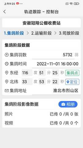 1. 全流程可视化轨迹监控与影像存证: 此功能直击用户对赛鸽运输过程不放心、看不见的核心焦虑。软件利用高精度坐标定位技术,能够实时绘制并记录赛鸽运输车辆的完整行进轨迹,形成清晰的地图路线图。用户可随时查看车辆位置、行驶速度及停留点,彻底掌握赛鸽动态。集鸽、入笼、铅封、途中检查等关键环节,用户均可通过软件随时进行拍照或录像,并一键上传至云端平台永久保存。这不仅为赛事留下了不可篡改的影像证据链,极大增强了赛事的公信力,也方便鸽友远程监督,安心备赛。