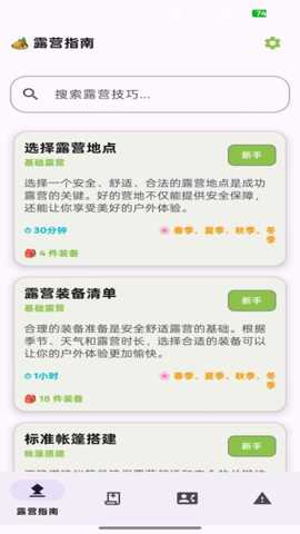 3. 离线急救与露营知识库:此功能直击户外活动中的安全痛点。应用提供了详尽的户外急救指南,内容涵盖扭伤、割伤、中暑、虫蛇咬伤等常见紧急状况的处理步骤。还包含专业的露营知识,如营地选择、野外取火、水源净化等。所有关键资料均支持本地下载和离线访问,确保用户在手机完全没有信号的偏远地区,依然能够随时查阅这些救生知识,在关键时刻进行有效的自救或互救,极大提升了户外活动的安全系数。