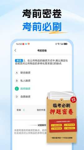 再者,软件设计极具用户友好性。界面简洁清晰,操作流畅便捷,支持离线下载题库,让用户在地铁、午休等任何碎片时间都能随时进入学习状态。详尽的题目解析不仅提供正确答案,更会剖析考点、梳理相关知识点,如同一位随身名师进行点拨。其社区化的互动功能也不容忽视,考生可以在社区内交流备考心得、分享学习资料、互相答疑解惑,营造了积极向上的备考氛围,让孤独的备考之路不再孤单。