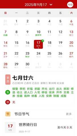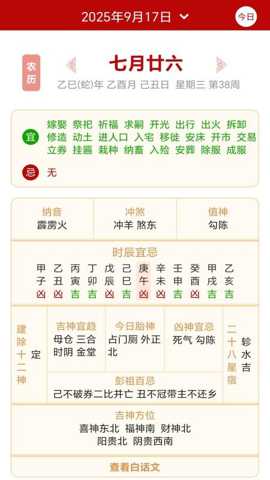 1. 综合日历查询与黄历宜忌指导:此功能直击用户在选择日期时的核心痛点——信息分散与解读困难。软件将公历、农历、黄历信息同屏展示,用户无需在多处查找比对。它详细列出了每日的宜与忌,如宜嫁娶、忌动土等,并附带传统的冲煞、吉神方位等信息。这解决了用户在筹划婚嫁、开业、搬家、远行等重要事务时,希望参考传统智慧以求心安理得的需求,将复杂的黄历文化转化为清晰的行为建议。