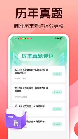 一、全维度题库覆盖与智能练习: 软件从根本上解决了用户练什么的问题。它提供了包括历年真题、考前密卷、高频错题、模拟考试和章节练习在内的多种题型模块。用户可以根据自身复习阶段,选择不同的练习模式。在基础阶段使用章节练习逐个击破知识点;在强化阶段通过历年真题把握命题规律;在冲刺阶段则依赖考前密卷进行实战演练。这种结构化的题库设计,确保了学习内容的系统性和全面性,避免遗漏任何重要考点。