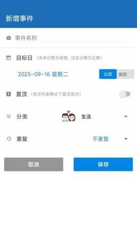 针对用户容易遗忘和事件繁杂的痛点,应用提供了极其便捷的事件添加功能。用户只需输入事件名称、选择日期,即可快速创建一个新的倒数日。它支持完善的事件分类体系(如家庭、朋友、爱情、工作、节日等),用户可以为每个事件打上标签。这项功能解决了事件堆积后查找困难的问题,方便用户日后按类别快速浏览和管理,使得重要的日子井然有序,一目了然。