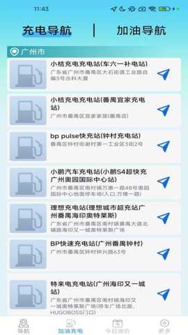 3. 全链路能源补给站查询与导航: 此功能直击车主找站难的核心痛点。软件整合了全国范围内海量的加油站和电动汽车充电桩信息。用户可根据当前所在城市或指定区域,快速检索附近的补给站点,并查看其具体位置、品牌、营业时间等详细信息。确定目标后,可直接从查询界面一键发起导航,软件将自动规划从当前位置到该站点的最优路线,彻底解决了用户在陌生区域寻找加油/充电设施的焦虑,极大提升了出行续航的便利性。