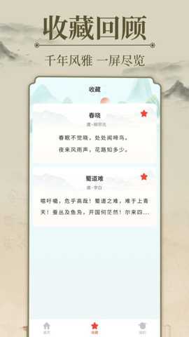 3. 个性化收藏与学习管理:解决易遗忘、难整理的问题。 在阅读过程中,遇到心仪的作品或佳句,用户可一键点击收藏,将其纳入个人专属的诗词库。这个功能如同一个数字化的读书笔记,允许用户建立不同的收藏夹(如最爱李白、婉约词精选、备考名句等),对学习内容进行分门别类的管理。用户可以随时回顾自己的收藏,温故知新,形成个性化的诗词学习轨迹,极大地提高了学习效率和知识的内化程度。