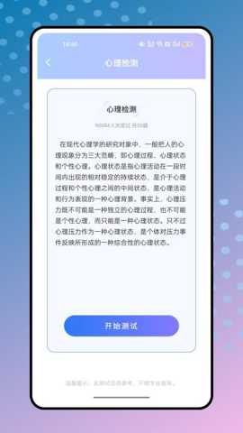 心理测量平台APP是一款深度融合了现代心理学原理与移动互联网技术的专业心理健康服务应用。它超越了传统心理测试的单一范畴,构建了一个涵盖心理状态评估、压力情绪管理、正念冥想引导以及基础健康指标检测的多功能生态系统。软件的核心理念是预防优于治疗和自我认知是改变的开始,为用户提供一个私密、便捷且科学的自我探索与成长空间。通过一系列精心设计的专业量表、互动练习和监测工具,它引导用户从了解自身心理状况出发,逐步掌握情绪调节与压力缓解的方法,最终提升整体的心理韧性与生活幸福感。