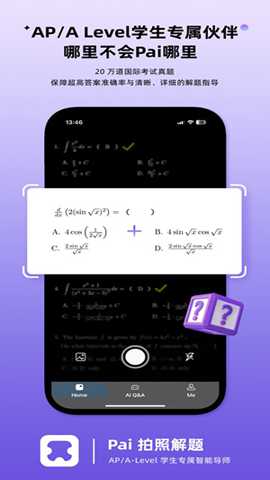 Pai拍照搜题的突出亮点在于其将技术力深度融入教育场景所展现出的专业性与人性化。其**AI识别技术的专业度**令人印象深刻,不仅对印刷体识别精准,对手写题目和复杂图表也保持了较高的容错率和识别率,这背后是强大的算法支持和持续的数据库训练。**解析内容的专业深度与教学逻辑性**是它与众不同的关键。解析并非简单罗列步骤,而是注重思维过程的呈现和知识点的串联,体现了教研团队深厚的教学功底,具有直接的教学参考价值。再者,软件拥有**覆盖广泛的权威题库资源**,特别是对国际课程(AP/A-Level)真题的系统收录,满足了多元化、国际化背景学生的学习需求,展现了其资源整合的广度。**以用户为中心的产品设计**贯穿始终:从拍照时的光线提醒、角度的建议,到真题库的智能筛选、疑问的互动反馈,再到会员服务的个性化设置,每一个细节都降低使用门槛,提升学习效率和体验,让科技真正温暖地服务于学习成长。