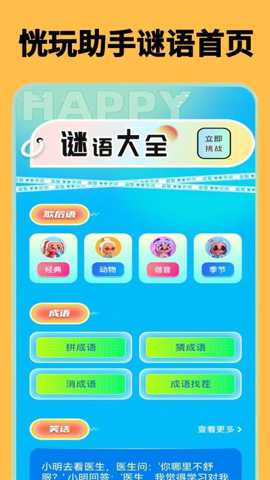 一、 海量谜语与成语游戏库,满足深度探索需求: 对于热爱中文文字之美的用户而言,单一的玩法容易感到乏味。恍玩助手深度解决了这一痛点,提供了极其丰富的谜语资源库,涵盖歇后语、谐音谜、季节主题谜语等多种分类。在成语板块,更是设计了拼成语、猜成语、消成语和成语找茬等多样化玩法,从不同维度考验用户对成语的理解、记忆和运用能力。用户可以根据自身兴趣和水平选择挑战,持续获得新鲜感和成就感。