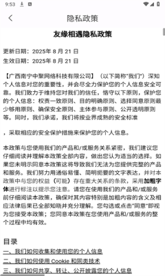 友缘相遇是一款深度融合智能算法与人性化设计的创新型社交应用,它解决现代人社交圈固化、结识新朋友效率低下且质量参差不齐的痛点,软件通过精准分析用户的多维度数据,包括明确设定的兴趣标签与隐性的行为习惯,构建出独特的个人社交图谱,并以此为基础,进行高质量的伙伴推荐,其设计哲学强调质量优于数量,减少无效社交的精力消耗,让用户将时间专注于那些真正可能产生精神共鸣与长久友谊的连接上,平台内嵌了丰富多元的互动场景与严格的信任保障机制,力求在虚拟网络中营造一个真实、安全、有趣的社交环境,帮助用户从线上轻松破冰,发展到线下深度互动,有效拓展个人的社交边界与生活视野。